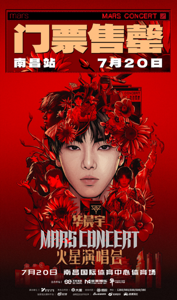 更值得一提的是此次发布的南昌站限定海报,蘸满一笔浓墨,书写火星璀璨华章,毛笔字的运用以及做旧的处理,使得海报整体风格呈现出国风基调,“火星”两个字赤色灼灼,占据海报颇多篇幅,南昌知名景点滕王阁、江西美术馆、绳金塔、南昌之星、八一起义纪念碑、双子塔等地标建筑立于华晨宇身后,预示着火星演唱会即将降临南昌,促成悠久的文化底蕴和现代音乐艺术的交织碰撞,在火星世界达到微妙的契合,也使得歌迷对南昌站的憧憬燃至巅峰。