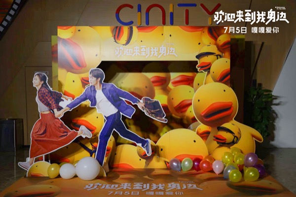 在全场观众的一声“你怎么才来呀”之后,导演宋灏霖,编剧缪倩,领衔主演于适、王影璐一同登台,与刚刚看过电影的观众们面对面交流。一套“鸭鸭盲盒”打开了主创们的心扉,也揭秘了《欢迎来到我身边》引人注目的“癫癫”气质原来是来自导演宋灏霖,而编剧主要负责“甜”,两人天马行空的创作力使“甜甜又癫癫”的作品气质应运而生。于适还在现场还原了片中陈小舟看到黄色车子受到惊吓的场面,王影璐锐评“跟丧尸变异那段似的”,令人忍俊不禁。谈及影片中的“露台弹吉他”桥段,于适就在现场小秀一下吉他技艺,与导演宋灏霖一起合唱片中插曲《我要你》,但于适的“走心”唱法与导演的“豪放”唱法形成强烈反差,“癫”感十足的表演让全场爆笑声不断。