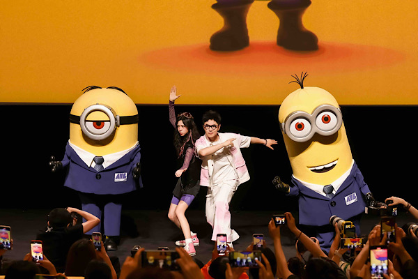 看看娱乐网讯 2024年6月15日——由环球影业出品、照明娱乐制作的全球爆款IP系列新作《神偷奶爸4》中国首映礼盛大举行!小黄人浪潮全方位包围上海影城,从银幕照进现实打造充满萌趣的欢笑世界。影片中文配音演员大鹏、庄达菲携手惊喜出席,揭秘独家幕后、玩转花式游戏点燃全场氛围!影片映后收获好评,顶流萌物小黄人整活捣蛋掀起热潮,观影体验欢乐拉满。《神偷奶爸4》重磅归来席卷全网,微博、抖音等社交媒体话题热议不断,猫眼、淘票票想看人数高居同档期第一。影片7月12日正式上映,预售火热进行中,让快乐填满整个夏天只需一票解锁!