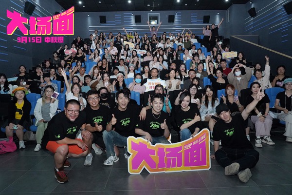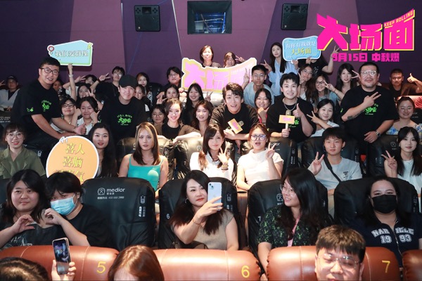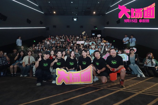 在你没来之前,都是小场面!电影《大场面》全国路演第五站9月10日空降江苏南京,导演李季,制片人刘然,主演王天放、马旭东、管乐、张祐维闪现五家影院和观众们团建奔现,把纯粹的快乐带给更多的人。主创们主动要求撤去影院铁马,全员席地而坐,笑称这是“喜人专属路演法”,用最实在的方式和观众们真正面对面,唠唠嗑。一位观众现场玩梗“别人送花,咱喜人送烟”,让王天放哭笑不得,和大家在一起的每个瞬间,都是喜上加喜的大场面!“整活儿”之余,南京的观众们也纷纷表达共鸣:“看完最后的大场面,《无名之辈》响起的一刻被感动得都要碎了!‘咱们都会找到拥有大场面的路径’给了我继续追梦的动力!”、“完完全全从头笑到尾,强子幻想接通电话时一直在想念家人,又瞬间潸然泪下”、“中间有很多小的细节戳人,整个电影充满巧思!”有观众现场表示“我刚开始看跟大家一样,每个人不管做什么动作都会笑,但是随着剧情发展,慢慢被演技和剧本逻辑性、完整性带进去了,后面会忘掉强子是王天放,老马是张祐维。还有马旭东太厉害了,让我一个特别喜欢你的人都‘讨厌’你了,这个演技牛!”特别期待与《大场面》这部新喜人们的毕业大作,早日在影院正式见面。