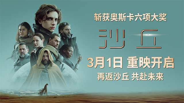 由美国传奇影业和美国华纳兄弟影片公司携手打造,科幻电影新教父丹尼斯·维伦纽瓦(《沙丘》《降临》《银翼杀手2049》导演)执导的好莱坞传奇科幻巨制《沙丘》第一部宣布将于3月1日内地重映。影片将在Cinity、IMAX、杜比视界、中国巨幕的顶级大银幕制式限定重映