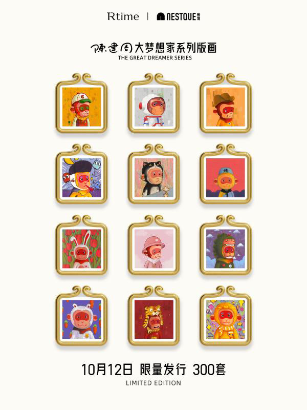 10月12日,万达电影旗下潮流家居厂牌栖境与知名艺术家陈建周联名打造的大梦想家系列版画正式上线全平台开售。