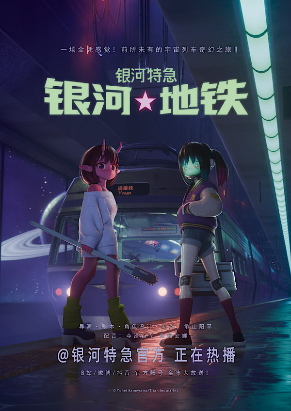 由日本SHIN-EI动画公司企划制作、泰坦工业制作的超短动画番剧《银河特急 银河地铁》在中国内地正式开播。